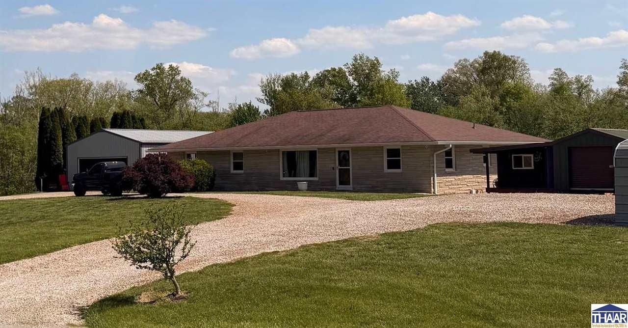 Country Living at Its Finest with this beautiful 4 Bed, 2 Bath home on ±10 Acres! Escape to the peace and privacy of the countryside with this beautifully maintained 4-bedroom, 2-bath brick home offering 2,088 sq ft of comfortable living space, all situated on approximately 10 scenic acres along a paved road for easy access. Step inside and youâ??ll immediately appreciate the generous room sizes and quality craftsmanship throughout, including Amish-built cabinetry and trim and solid interior doors that add warmth and character. The home also features stainless steel appliances and thoughtful upgrades that make everyday living both functional and stylish. Outside, the property truly shines. Enjoy a spacious, well-maintained lawn, partially fenced backyard, and a peaceful setting surrounded by mature trees and a quiet creek, perfect for relaxing or exploring. Outdoor enthusiasts will love the 4-wheeler trails and abundant wildlife, making this property ideal for hunting or recreation. This property includes plenty of extra space for hobbies, storage, and entertaining, boasting a detached 24x36 (2-car) garage, fully climate-controlled and featuring a finished 12x24 â??man caveâ??, an additional detached garage measuring 20x30 with insulated and heated workshop/storage space, carport for additional covered parking, and playhouse with attached utility shed, perfect for kids or extra storage Whether you're looking for a private retreat, a hobby farm, or a place to spread out and enjoy nature, this property offers the perfect blend of comfort, function, and outdoor lifestyle. Donâ??t miss your chance to own this slice of country paradise!